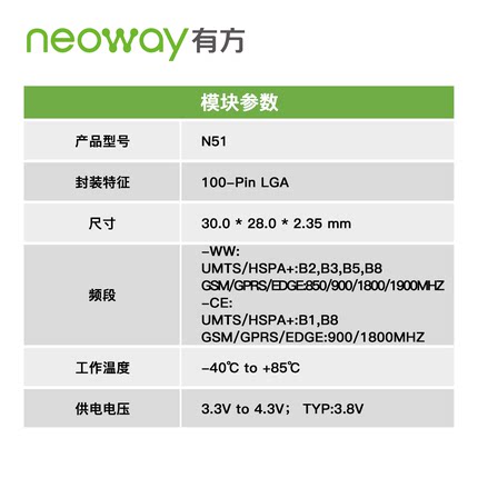 模塊Neoway 有方科技 N51 UMTS/GSM/WCDMA 3G 無(wú)線通信模塊 模組
